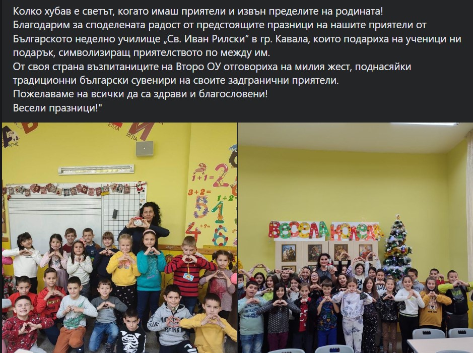 БНУ „Св. Иван Рилски“ Кавала успешно си сътрудничи с 2 ОУ „Гоце Делчев“, гр. Гоце Делчев, вкл. с посещения на място в Р България и Р Гърция, обмяна на опит за учебния процес, мобилност на учители.