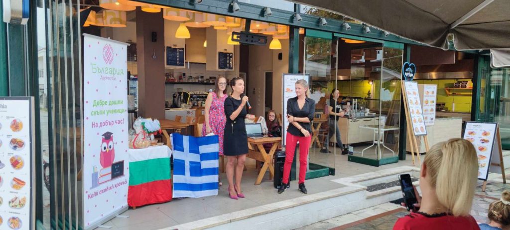 Специални поздравления и пожелания за успешна учебна година бяха отправени от г-жа Вера Друмева от Генералното ни консулство в Солун и г-жа Анелия Христова – председател на Дружество България.