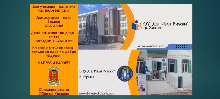 Съвместна инициатива между ОУ „Св. Иван Рилски“ гр. Хасково и Българско Неделно Училище „Св. Иван Рилски“ към Дружество „България“ в Р Гърция, подкрепена от Община Хасково, бе осъществена успешно в навечерието на един от най-светлите български празници – Деня на народните будители.